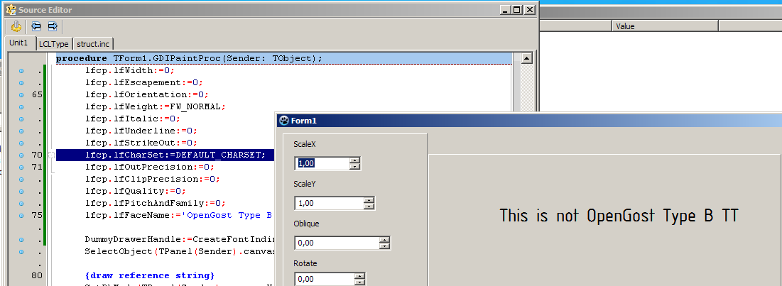 zub писал(а):Приложил свою нерабочую демку. Стоит в ней заменить 'OpenGost Type B TT' на 'times' - всё работает