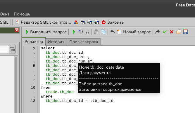 Добавил отображение в хинте к SQL редактору описание объекта, находящегося под курсором.