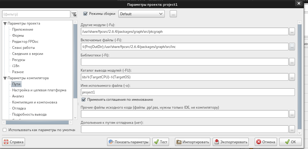 ничего не изменилось, пробовал в самой ide добавить. Все что нашел это options>directories>units туда прописал /usr/lib/fpc/2.6.0/units/i386-linux/graph, пробовал и с -Fu и без него , даже рядом в libraries - ничего не дало.