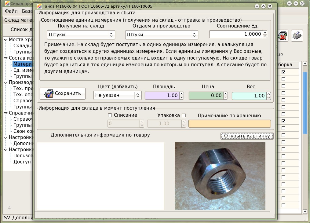 В шапке окна (да и на всех скриншотах) написано "Склад произвдства" -- т.е. пропущена буква "о".