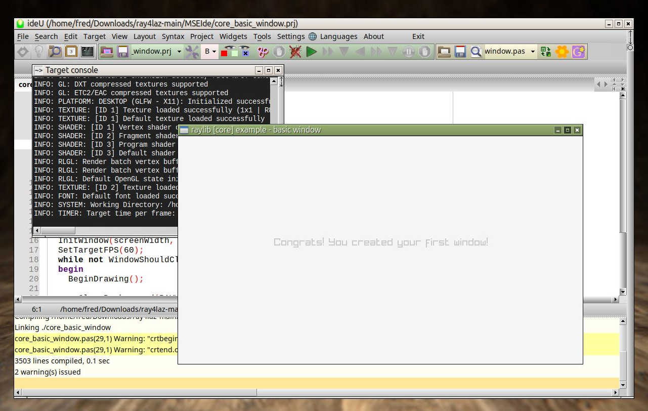 ShowMessage('Yeah! raylib work in LCL !!!');