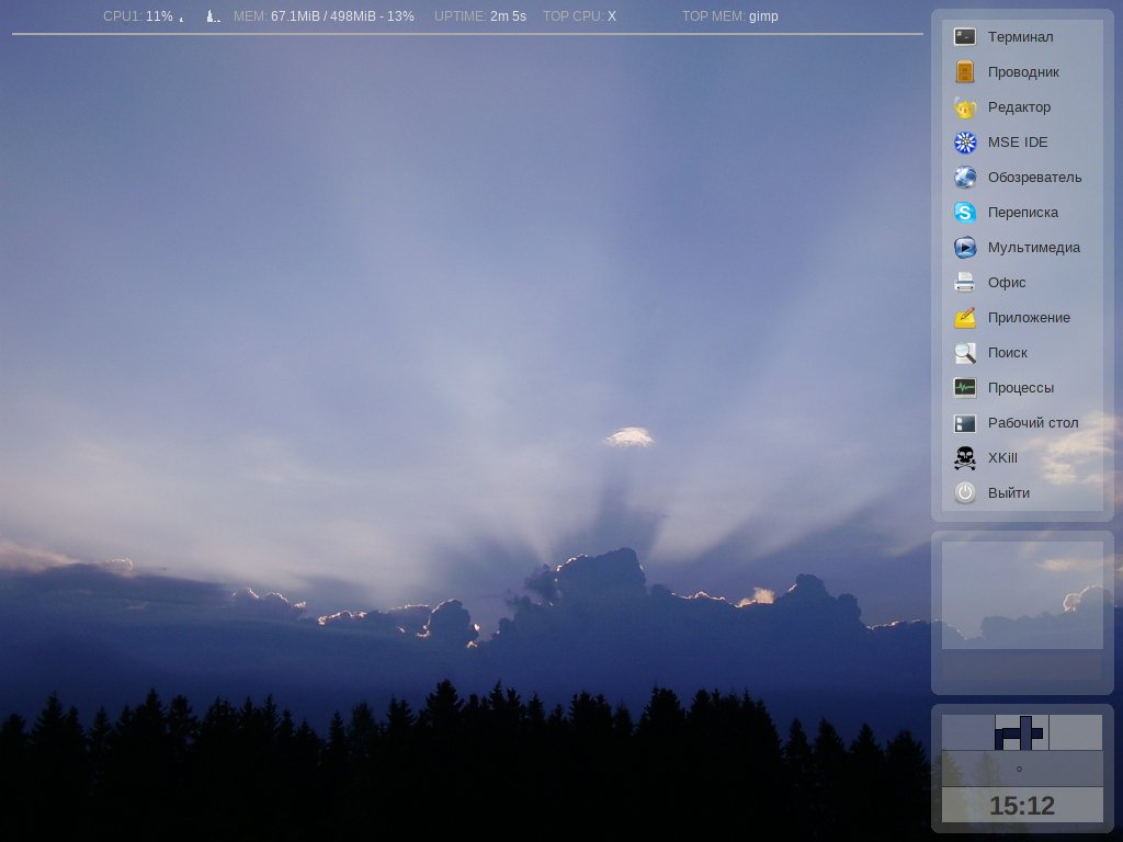 как видите conky (строка вверху) показывает занятость 67,1 Мбт памяти.