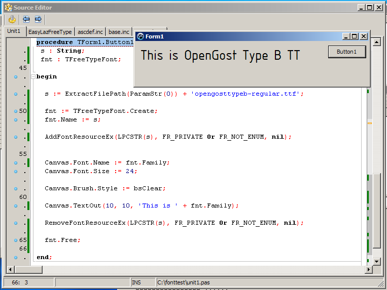 Первые результаты. На картинке оба рендера одновременно, крупный - мой "треугольный", мелкий - системный, пока и шрифт не тот, размеры не те и наклона нет, но уже хоть чтот0)) Сразу полезли проблемы - отсутствие реализации SetTextAlign в линуксе и странный сдвиг "системных" символов - похоже на descent из ttf metrics