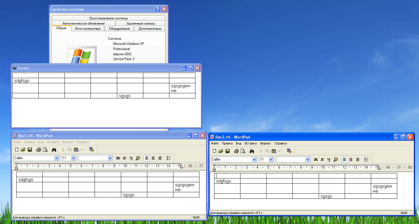 Потом открой этот .rtf с помощью Wordpad-а. Очень большой шанс что на винде 7 и более поздних, таблички будут видны, а вот в Wordpad-е на XP абличек не будет.
