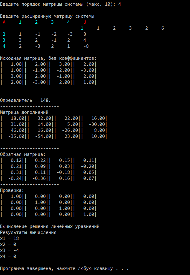 Reshenie_lin_Yravneni(n,a,u,x); {Вычисляем решение системы уравнений}